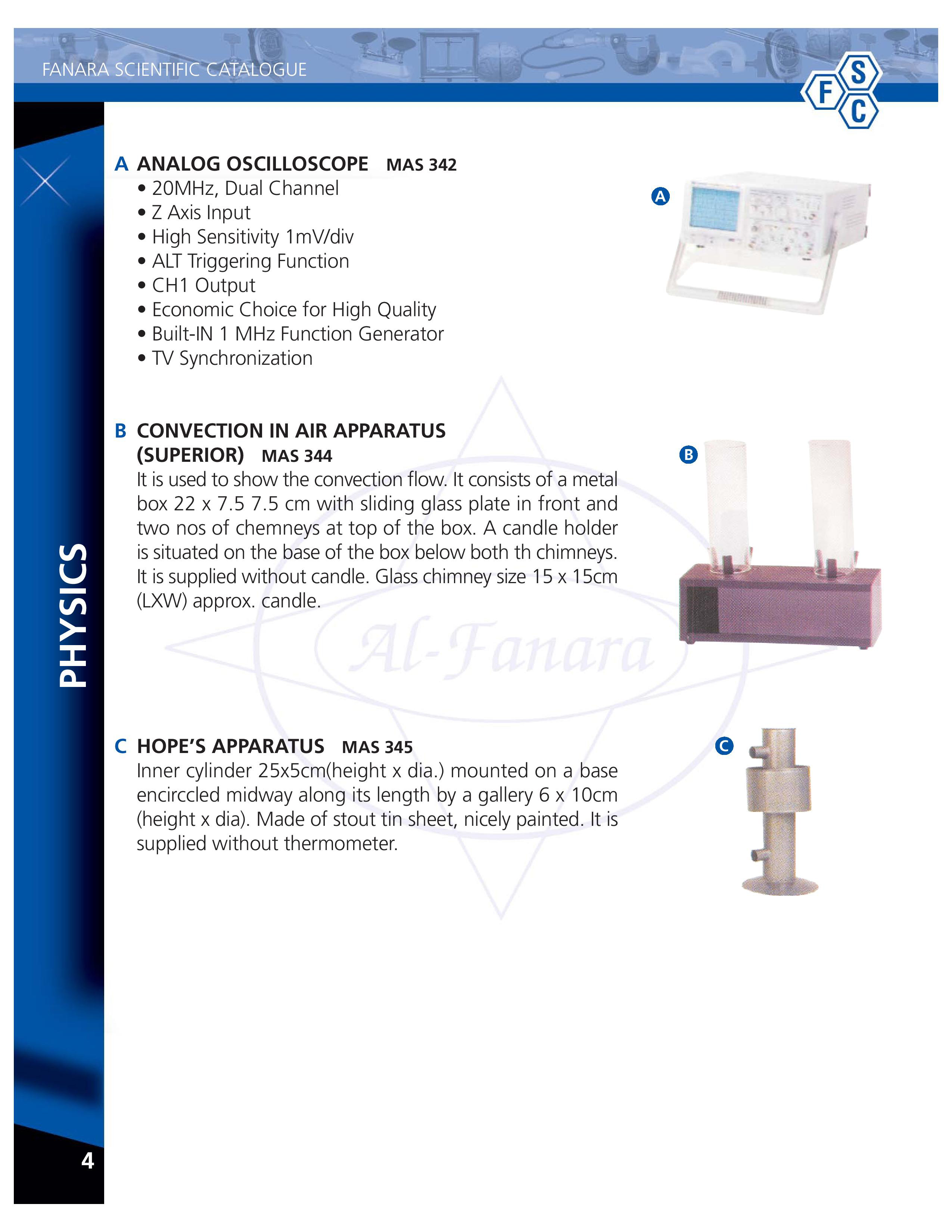 Analog Oscilloscope- MAS 342 , Convection in Air – 344, Hopes Apparatus-MAS 345