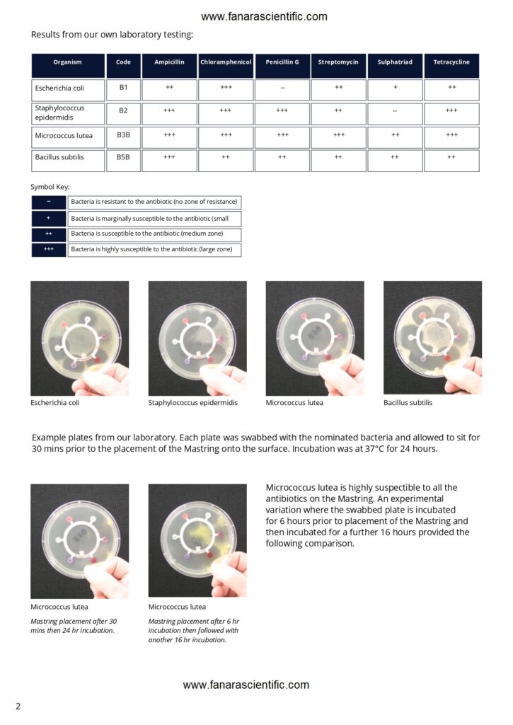 - Zones of inhibition can sometimes be rather large when using Mast Rings. The antibiotic discs could be trimmed off and applied 3-4 at a time on a single bacterial plate to prevent the zones from overlapping.