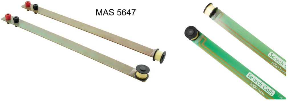 These Search Coils consist of 5000 turns of very fine copper wire on a bobbin fixed at one end of fibre glass board (electrically insulated and non magnetic) and on the other end two 4mm socket terminals are fitted. They can be used to determine field strengths or flux density inside the air gap of magnets or solenoids. An a.c. or d.c. signal can be applied to the search coils to study the effect of interacting magnetic fields.