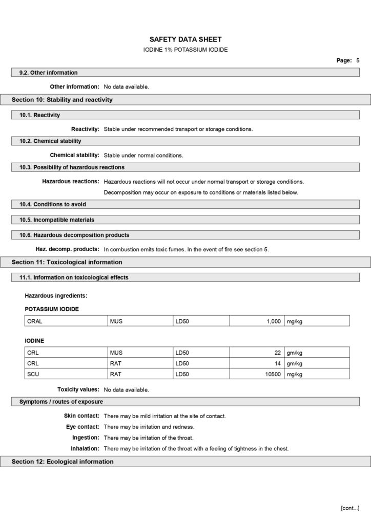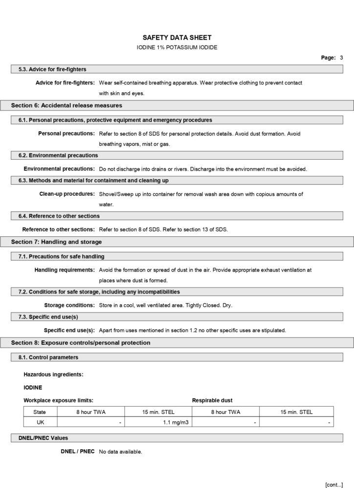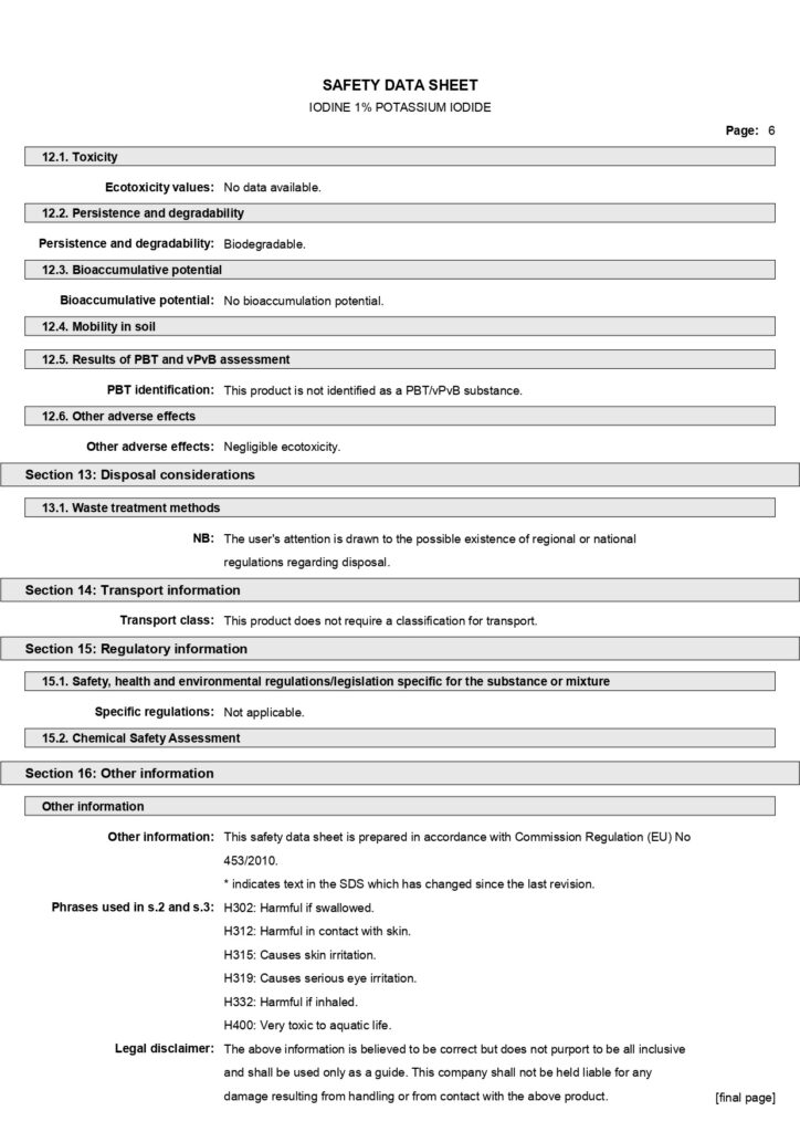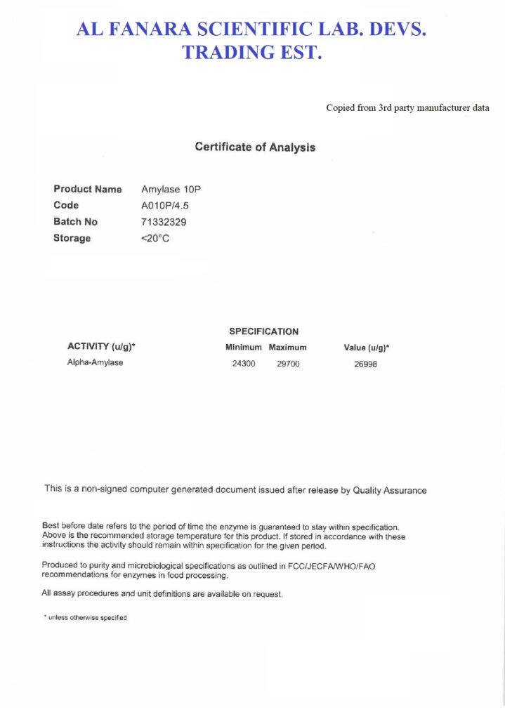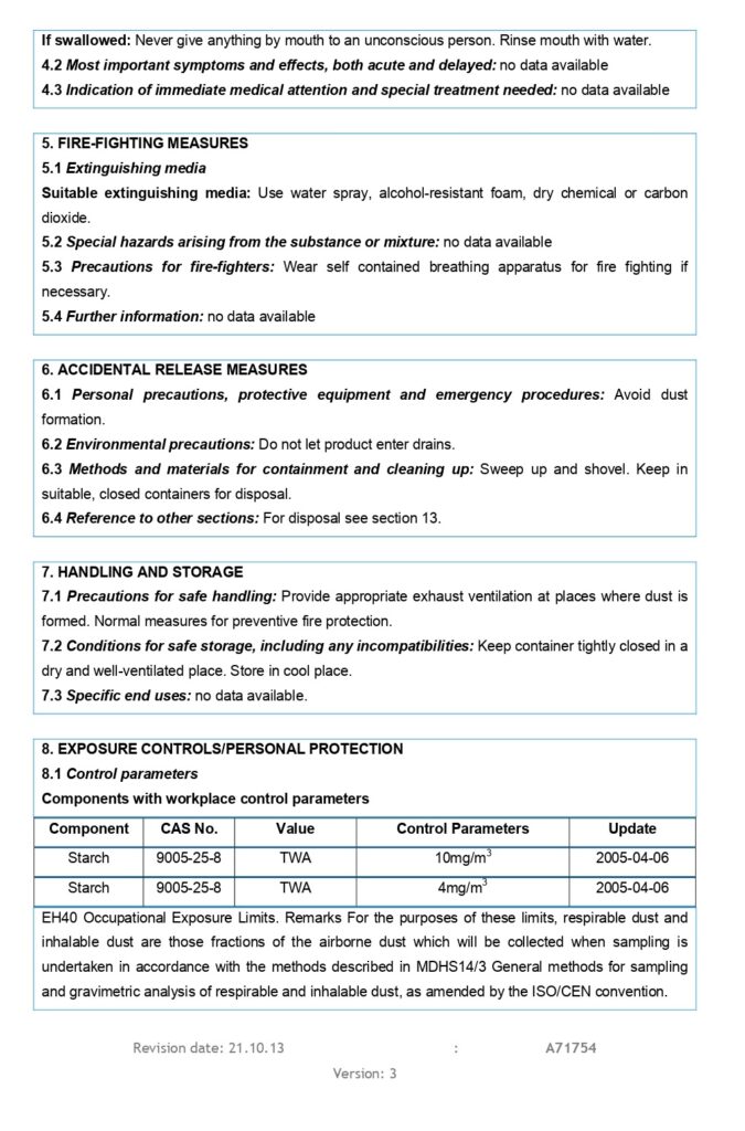 MSDS Date for Amylase , Iodine in KI solution, Starch Powder