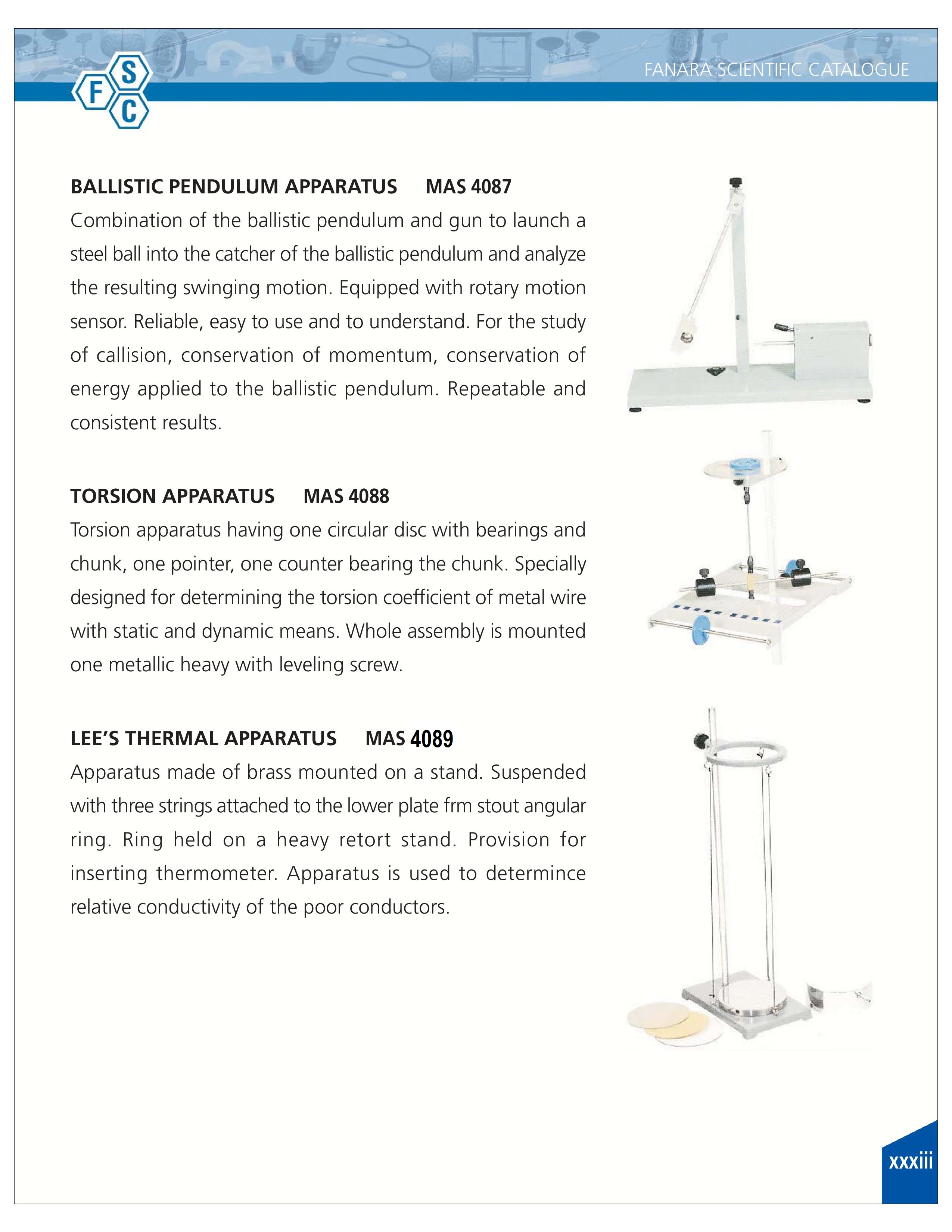 Ballistic Pendulum-4087, Torsion Apparatus-4088, Lee’s Thermal Apparatus-4089