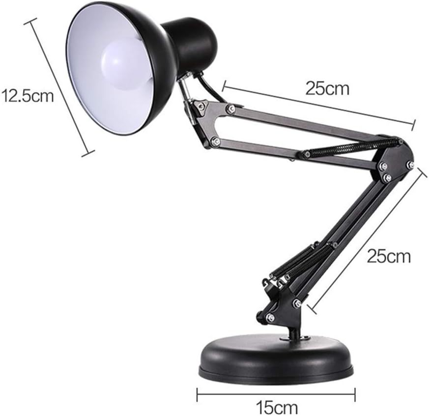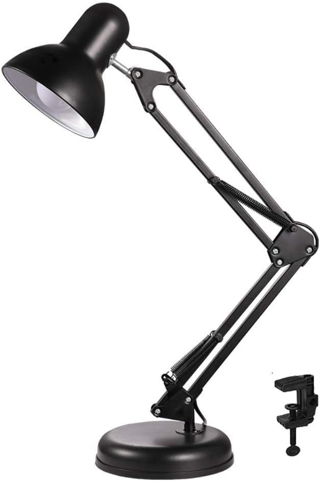 MAS 1089A | Metal Swing Arm Desk Lamp | Adjustable Arm Black Finish | Interchangeable Base Or Clamp Classic Architect Clip |