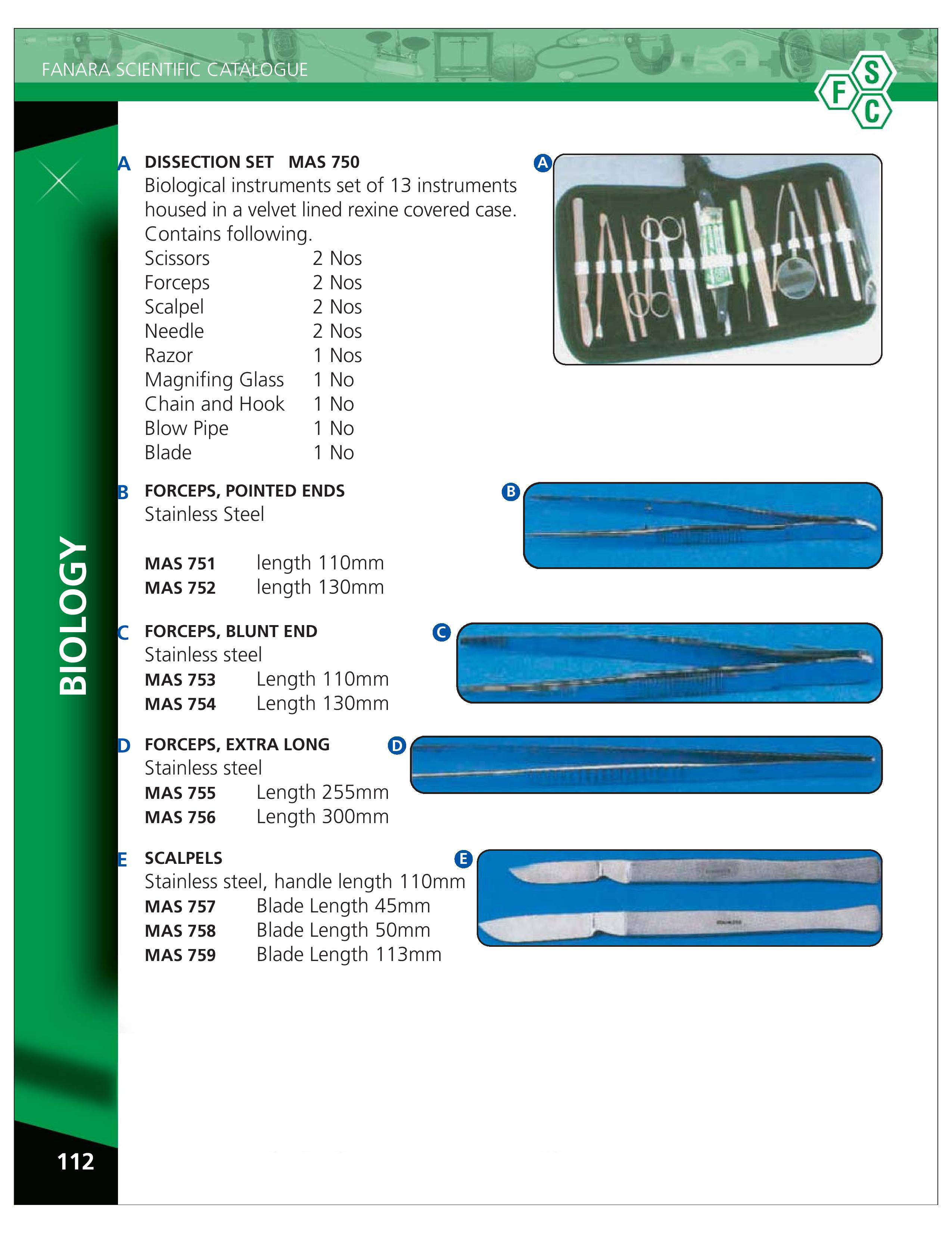 Biology – Dissection Set, Forceps- Pointed, Blunt-End, Extra-Long, Scalpels