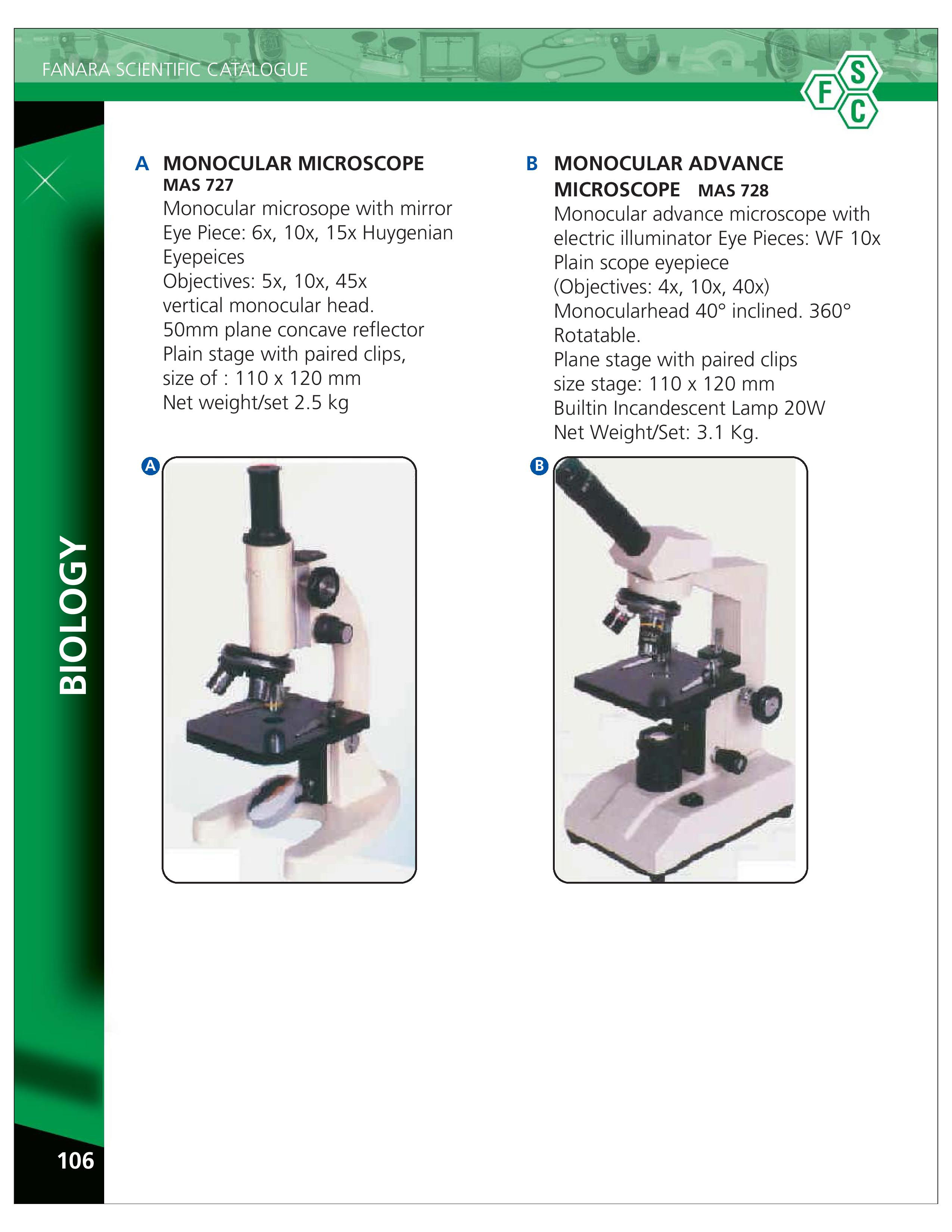 Monocular Microscope with Mirror – 727, Monocular Microscope Halogen Bulb – 728