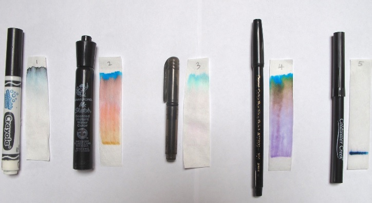 Black pens are recommended because they usually have many different dyes in their ink. Students should be encouraged to try markers of different colors or food coloring (the green food coloring works well). Do not be disappointed if the marker does not produce a dramatic separation pattern.