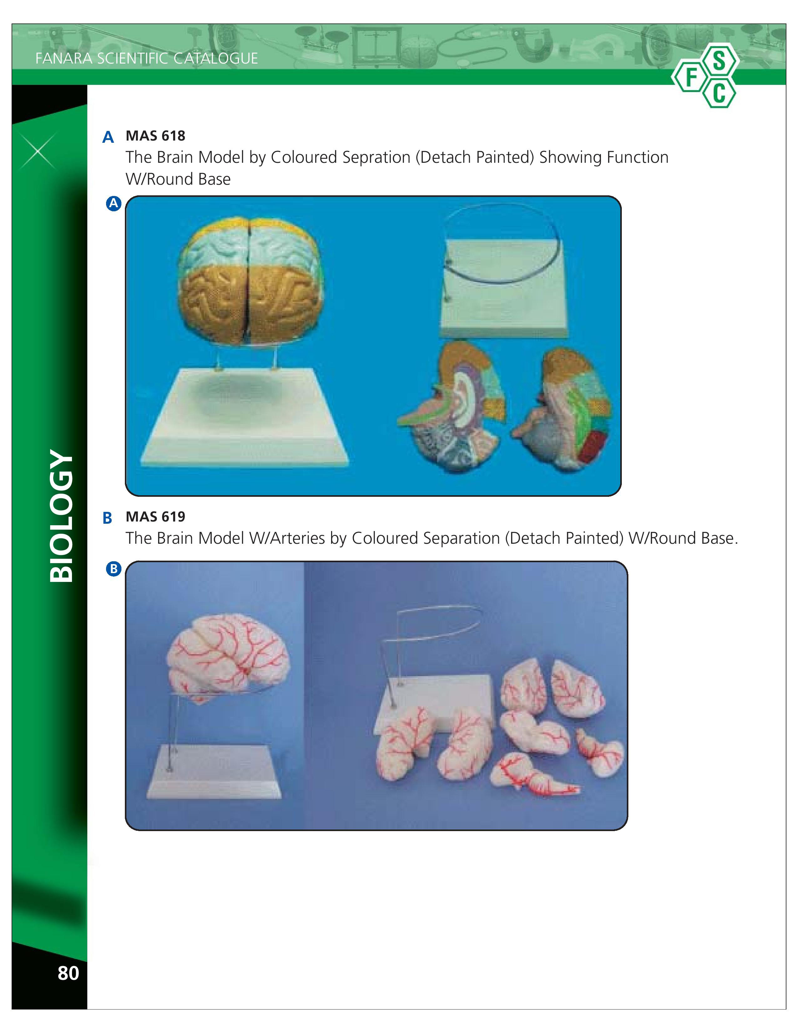 Brain Model W/Arteries Coloured Separation Showing Function, W/Round Base(Detach Painted)
