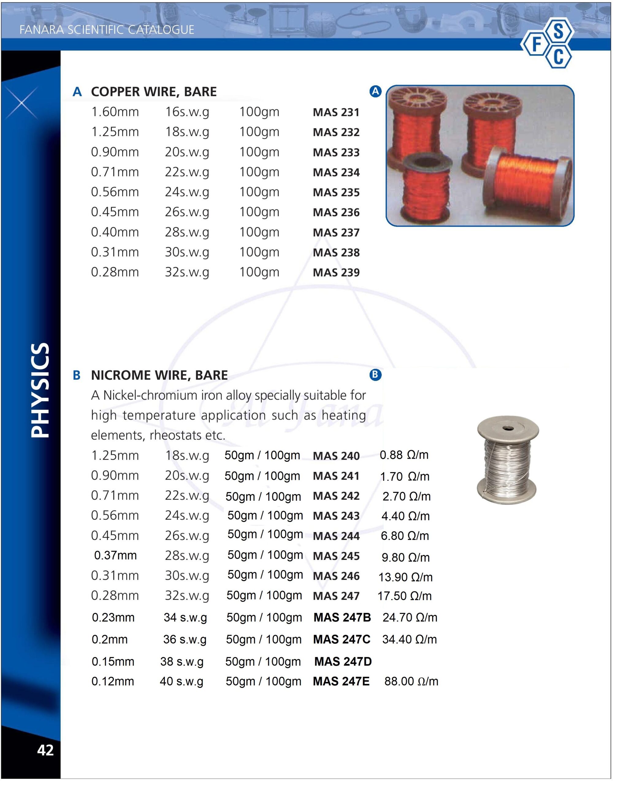 Copper wire-231/232/233/234/235/236/237, Nichrome wire-240/241/242/243/244/245/246/247