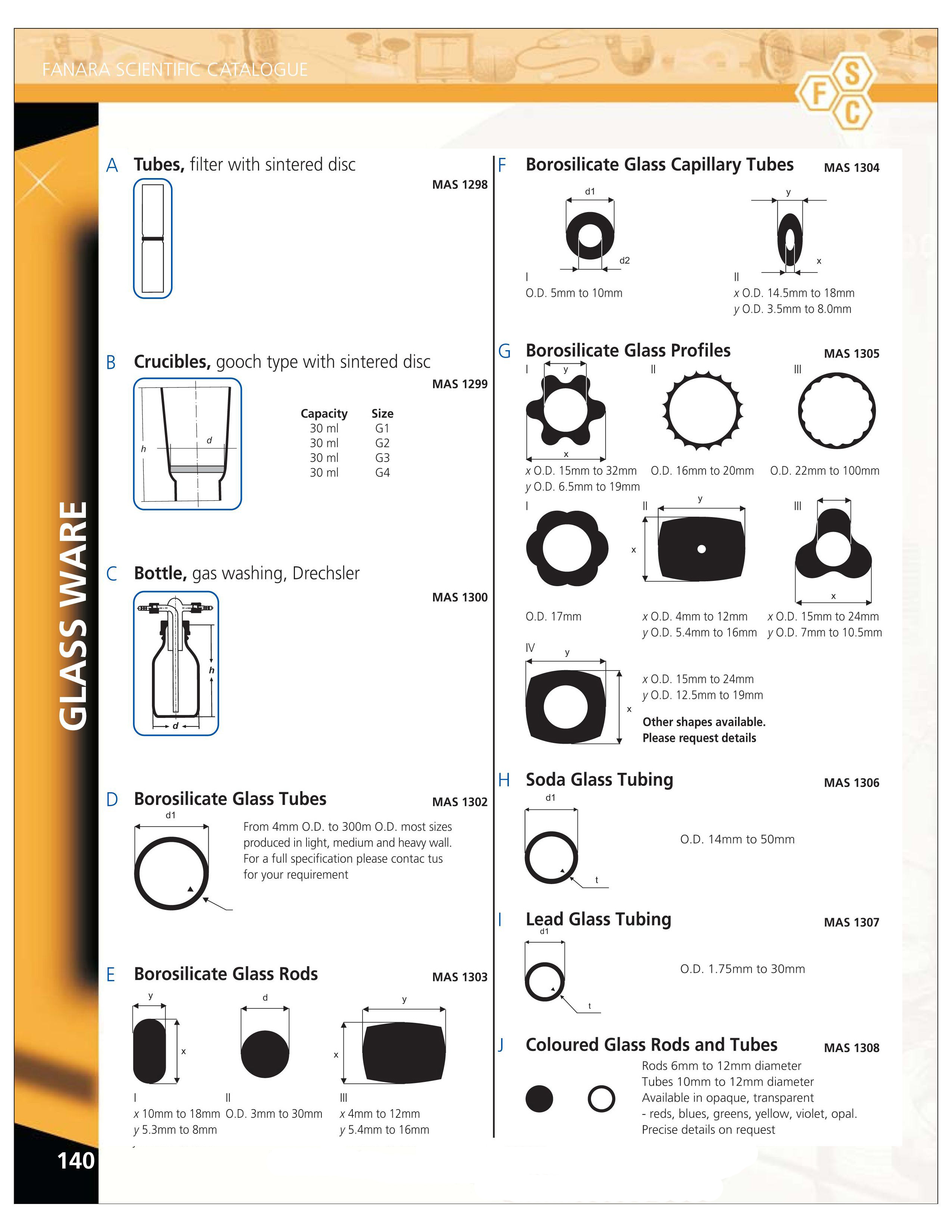 Crucible with Sintered Disc, Gas Wash Drechsler Bottle, Glass Rods, Glass Tubing, Capillary Glass Tubes & Rods MAS 1298 – 1299 – 1300 – 1302 – 1303 – 1304 1305 – 1306 – 1307 – 1308