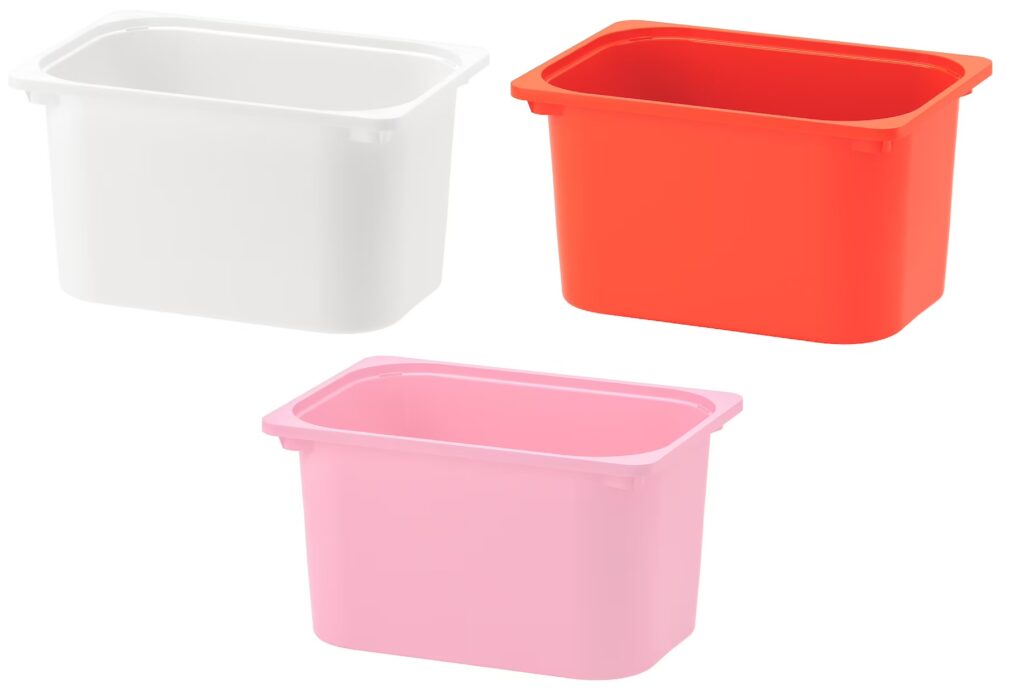This deep, pink box is perfect for storing building blocks, soft toys and books. Made of durable plastic and fits in TROFAST frames, but can also be stacked on the floor if you complete with a lid.