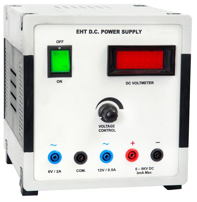 Digital EHT Power Supply 0-5kV is continuously variable. It provides low ripple and a high precision continuously variable voltage. Whole assembly is housed inside a plastic box. Power supply has been designed and manufactured to require no routine maintenance.