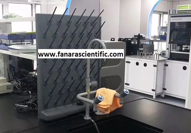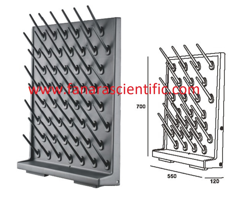 Laboratory drying rack is a pegboard for hanging and draining glassware in a laboratory. It is available in different varieties and sizes. It can be used for different materials of glassware in the laboratory room such as funnels, pipettes, mixing balls, slides, bottle stoppers, tubing and so on. In addition to that, the pegs on the drying rack are easily removable and replaceable in order to maintain the cleaning of the lab racks to avoid contamination with other apparatus used on the same rack. Any common laboratory needs to have at least two or three drying racks per lab.