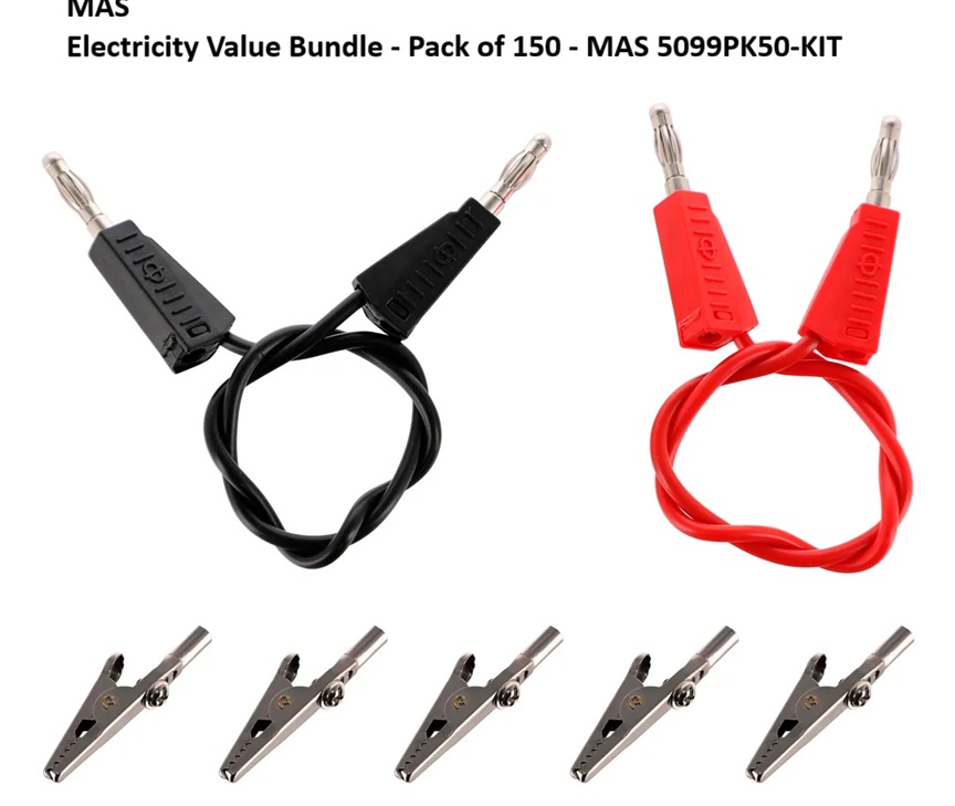 Test leads have 4mm banana plugs at each end. The plugs are stackable with a cage spring to provide secure connections, and incorporate a socket at the rear to accommodate an additional 4mm plug. Body and spring are nickel plated machined brass. Insulated covers manufactured from ABS plastic. Lead length 250mm.