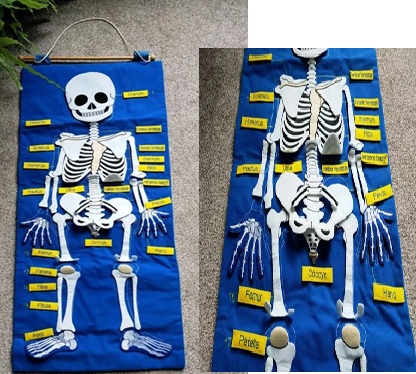 - Enhance your teaching of human anatomy with this versatile fabric skeleton wall hanging. It excites curiosity and supports hands-on learning, making the exploration of the skeletal system tangible and interactive. Children can easily identify various bones using the detachable pieces, each labelled for easy matching.