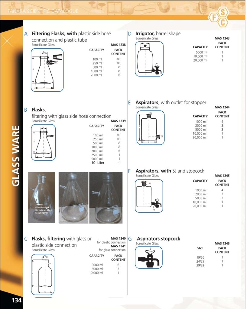 Filtration Flasks, Aspirator Bottles, Stopcock MAS 1238 / 1239 / 1240 / 1241 / 1243 / 1244 / 1245 / 1246