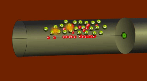 The ionizing particle passing through the tube ionizes the gas and electrons so produced move towards Anode. The velocity is quite high and they later produce secondary electrons after repeated collisions with the particles of the gas.