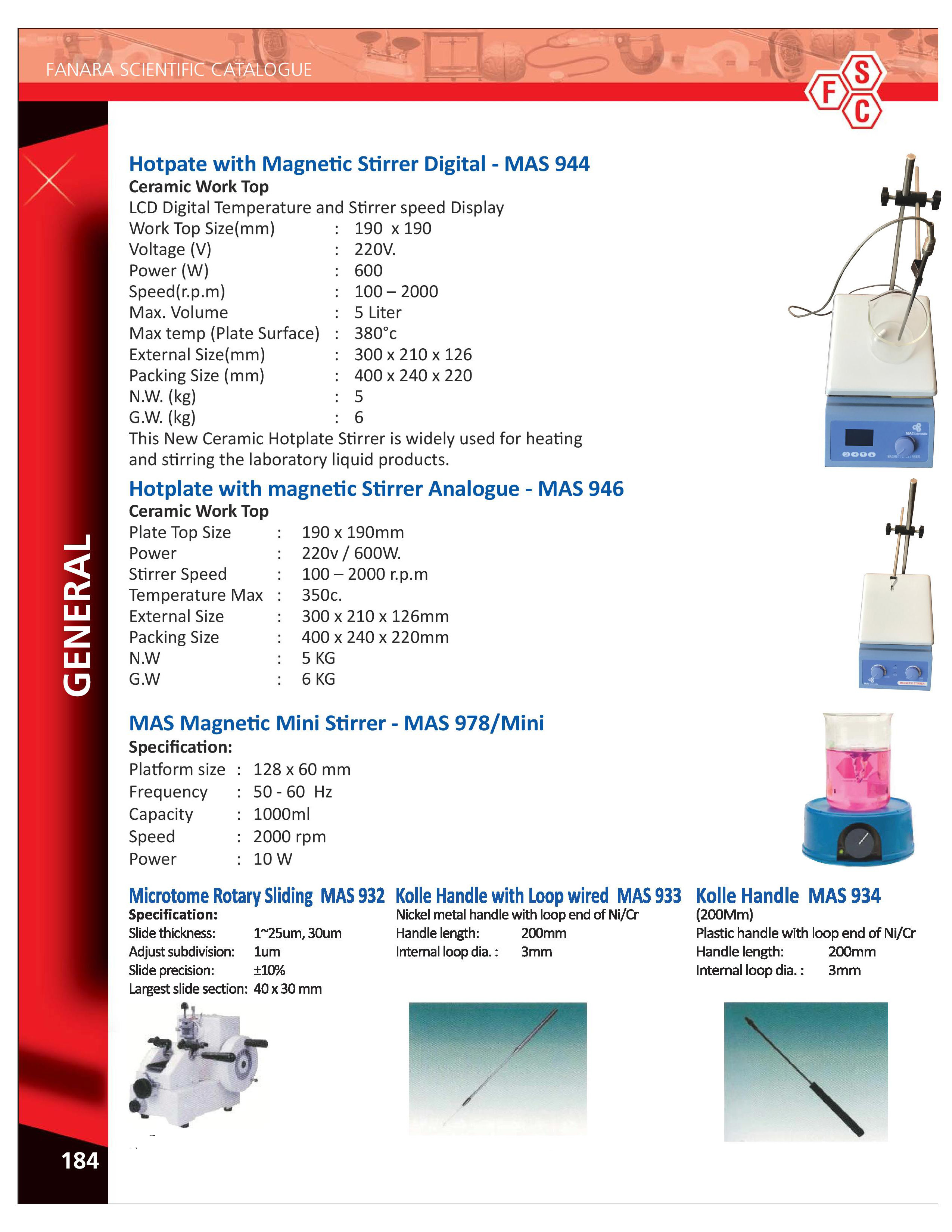 Hotplate With Magnetic Stirrer Digital-944 & Analogue-946, Magnetic Mini Stirrer-978, Microtome Rotary Sliding-932, Kolle Handle-934