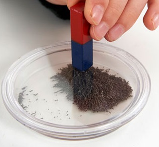 In use, the filings are distributed evenly over the base of the bubble by shaking or tapping. The bubble is then placed over the magnet and gently tapped to permit the filings to align themselves in the magnetic field.