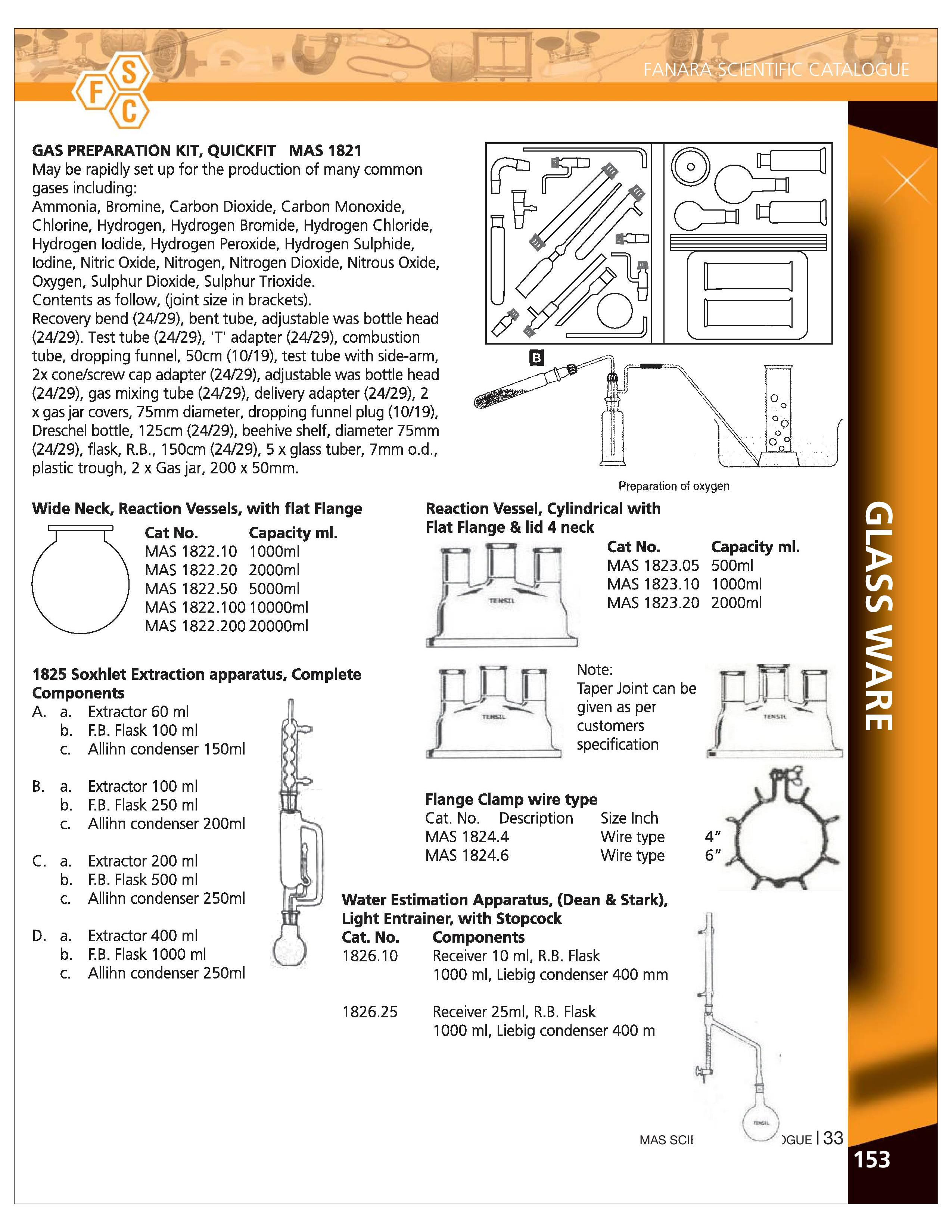 Joints, Gas Preparation Kit, Reactor Flask with Lids, Soxhlet Extraction Kits, Dean & Stark Apparatus