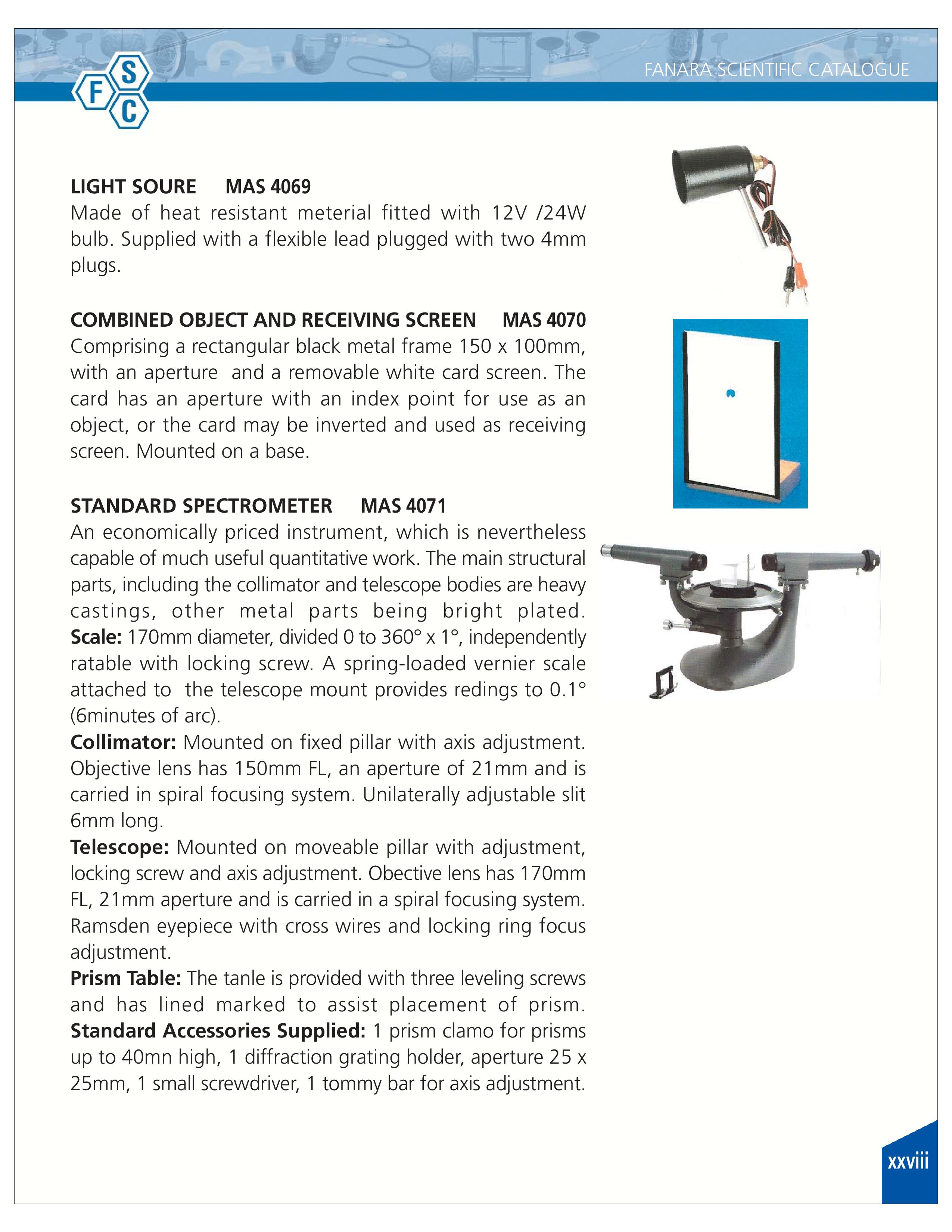 Light Source Optical bench-4069, White Screen-4070, Spectrometer single Stage-4071