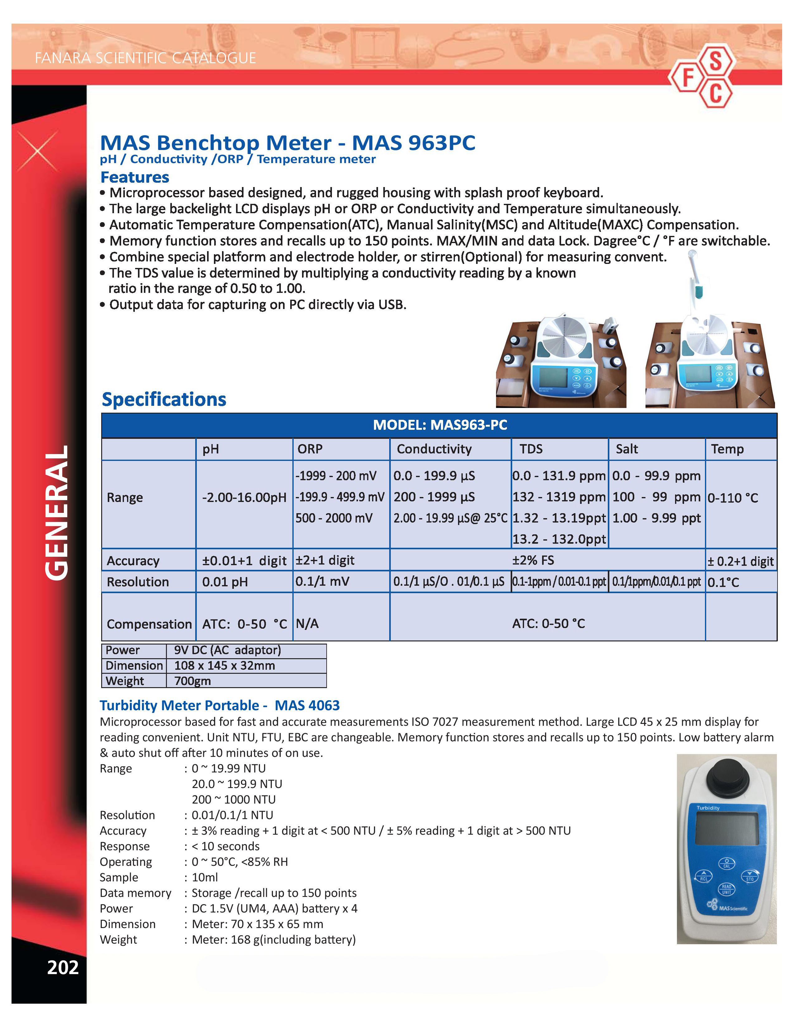 MAS Benchtop Meter – MAS 963PC, Specification, Turbidity Meter Portable