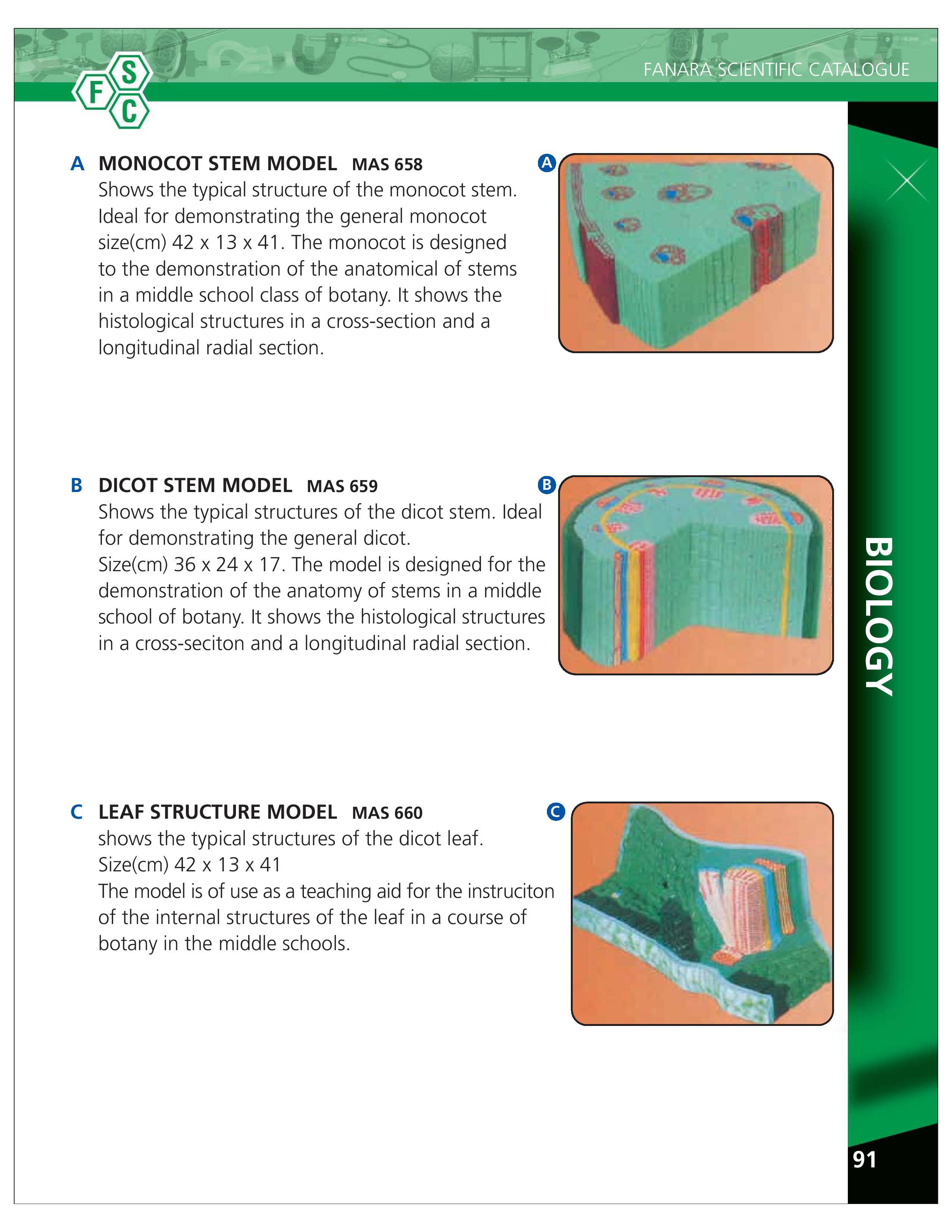 Model of Monocot Stem-658, Dicot Stem-659, Leaf Structure Model- 660
