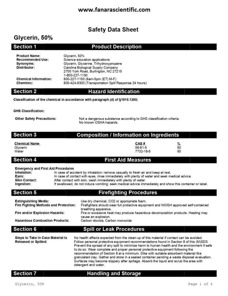 MSDS- Glycerin 50%