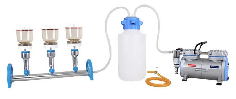 180311-11(22)-T | MultiVac 310-MS-T Vacuum Filtration System includes : ▸ Rocker 400, Oil Free Vacuum Pump ▸ MultiVac 310-MS, 3-Places Aluminum Manifold ▸ MF 3, 300 ml Magnetic Filter Holder (3 pcs) ▸ 4000 ml PP Vacuum Bottle with drain ▸ Silicone Tube (1m x 2pcs) |