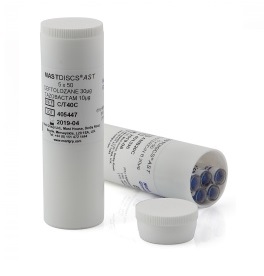These antibiotic susceptibility discs from MAST are test discs impregnated with a set concentration of a specific antibiotic, and come supplied in dispensing cartridges of 50 discs. Non-impregnated (blank) discs are also available, for control purposes.