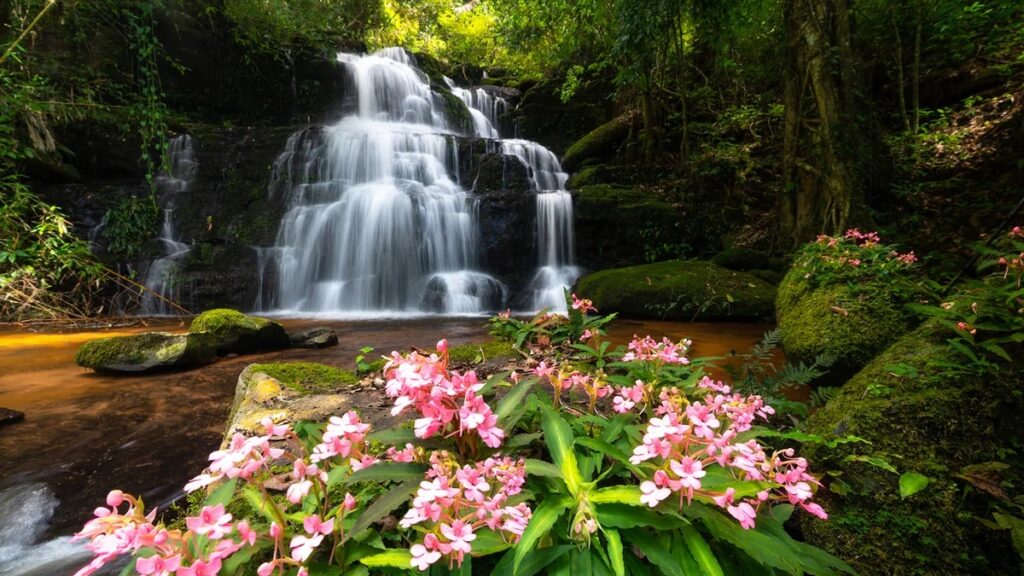 • The floor of the rainforest is dimly lit, so flowers in muted tones would be hard for insects to see. The brightly colored blooms of rainforest plants allow bees and other pollinators to easily see and find them for pollination.