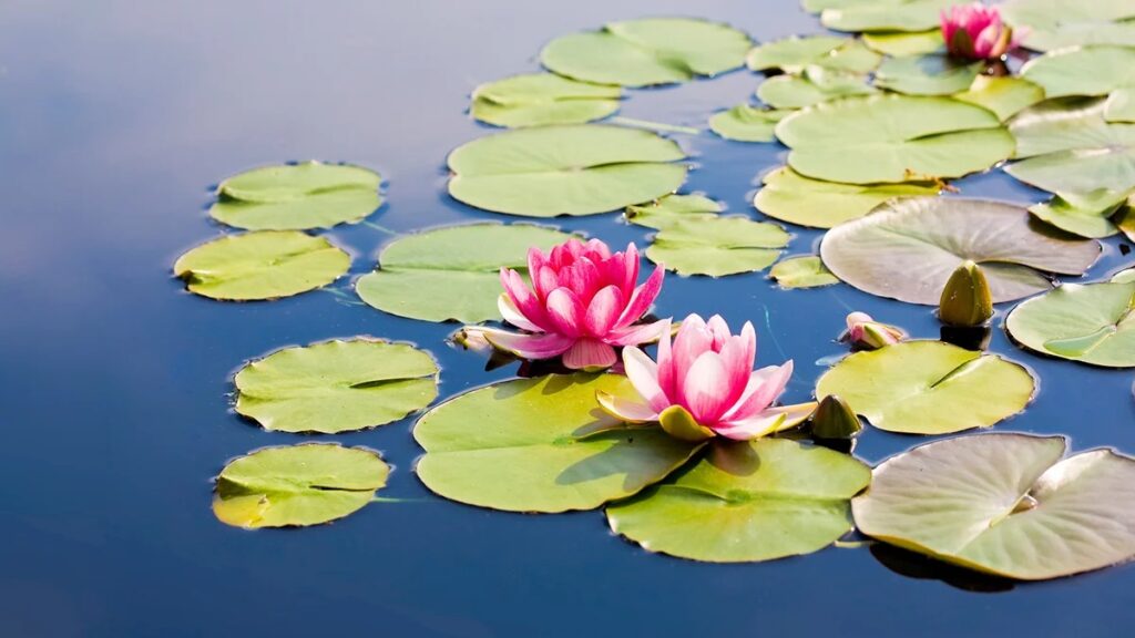Some aquatic plants, such as water lilies, float on the surface of the water. Water lilies can thrive in muddy water because of this adaptation. Since their leaves float, they can easily take in light. The light does not have to go through muddy water in order to reach the leaves.