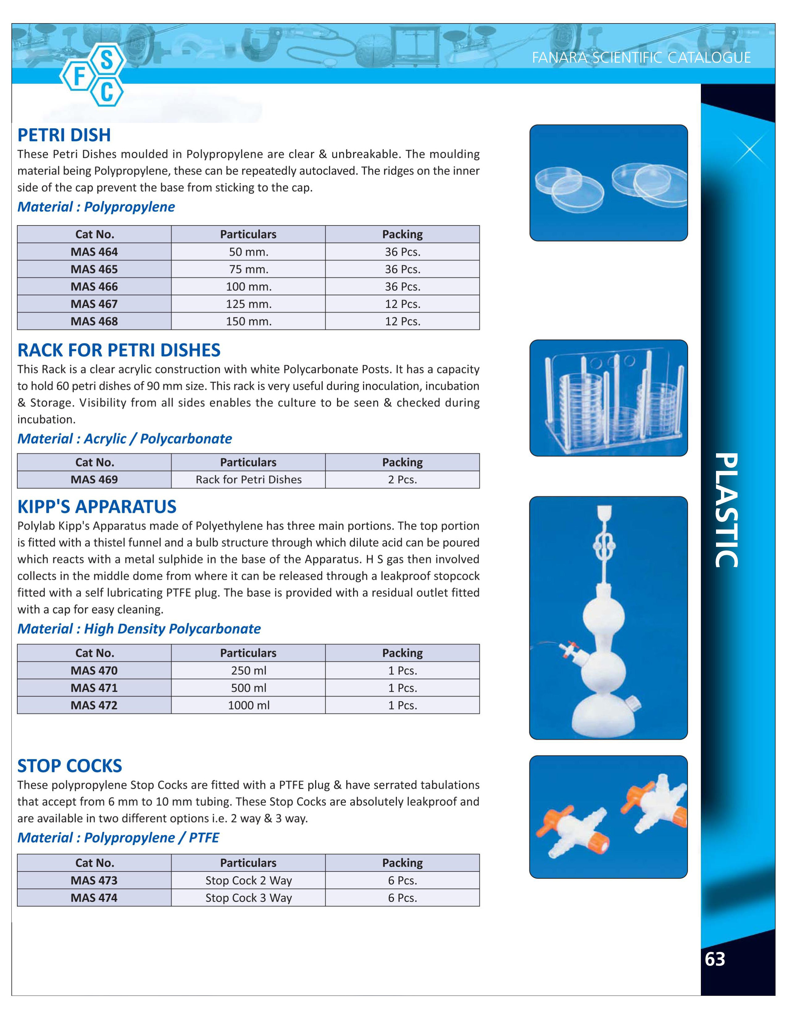 Plastic Petri Dish, Petri Dish Stand, Plastic Kip’s Apparatus, Plastic Stopcock
