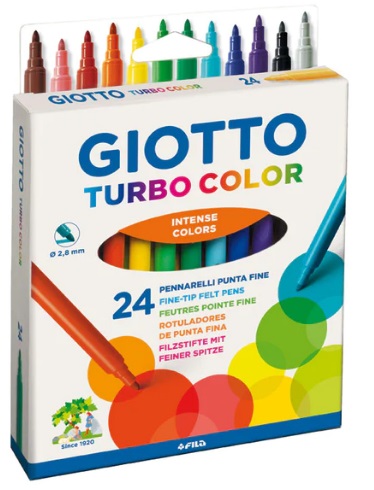 Turbo-powered colour. When you need to colour, Giotto Turbo Color pens never let you down! Created with harmless, washable ink they come with a fine long-lasting, super-resistant fibre tip that never retracts. Available in 36 intense, bright colours, Giotto Turbo Color pens our 100% safe thanks to the ventilated safety cap.