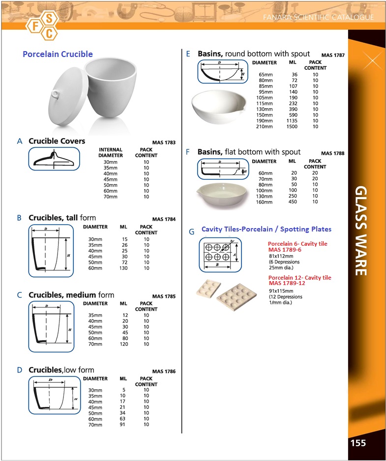 Porcelain Crucible, Evaporating Dish, Spotting / Cavity Tiles