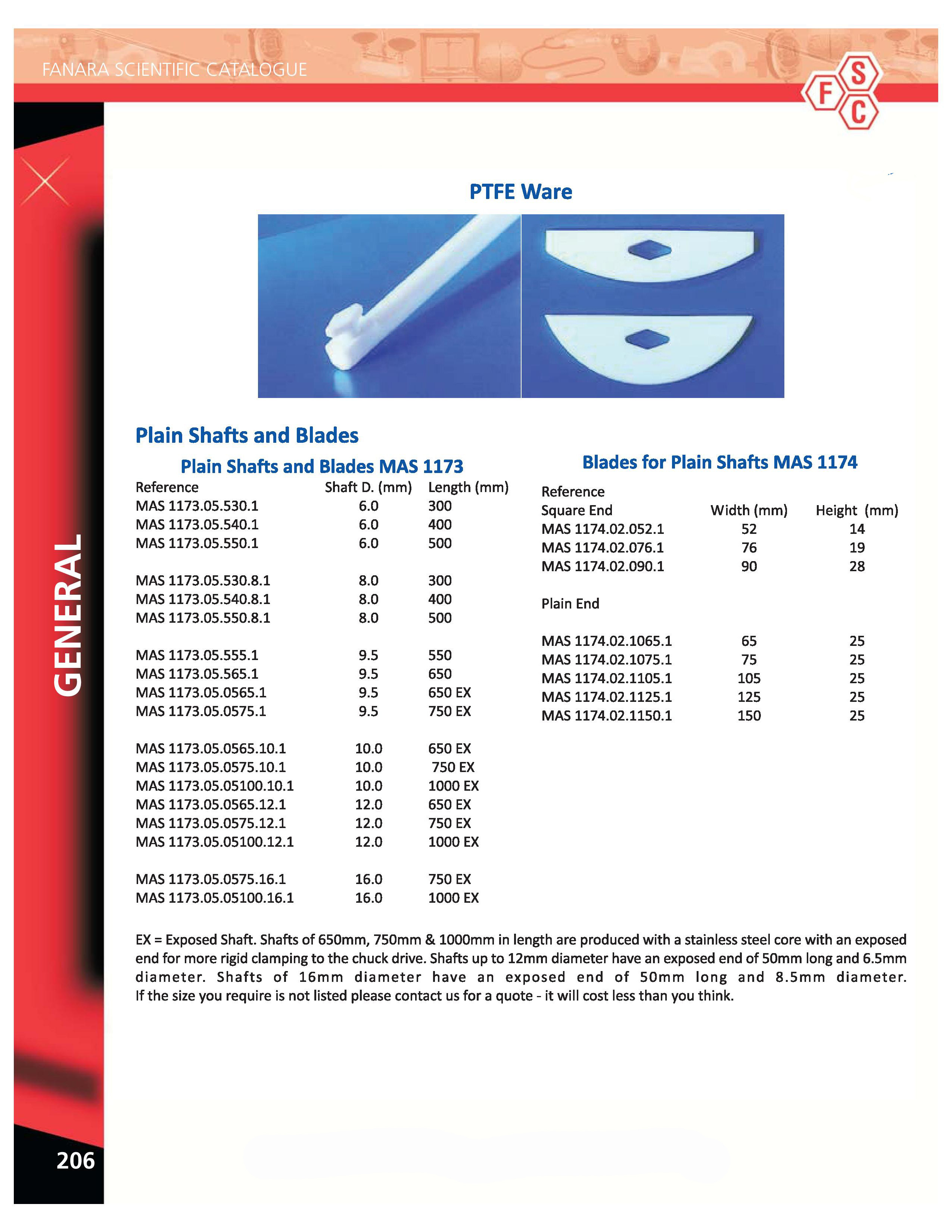 PTFE Ware, Plain Shafts & Blades MAS 1173/1174