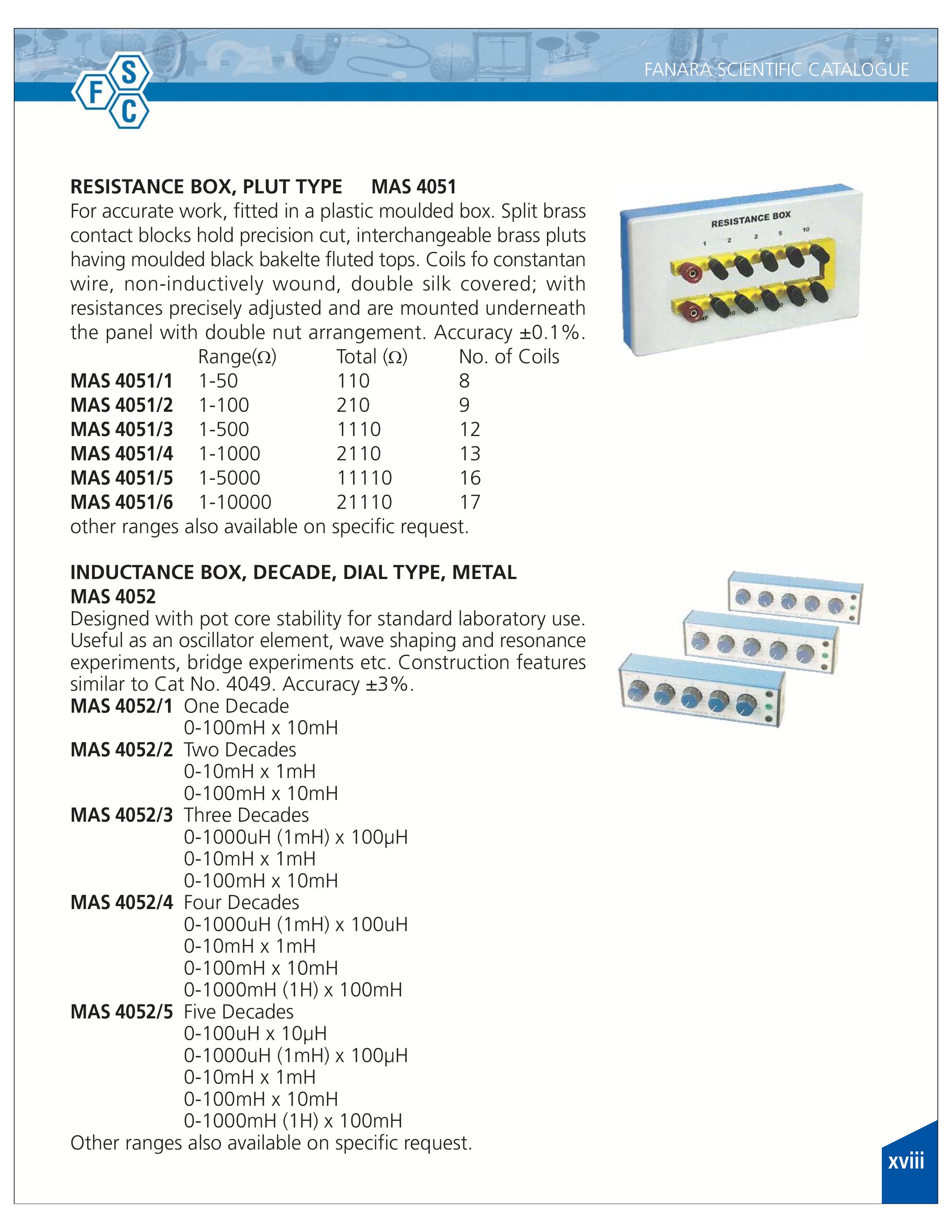Resistance Box Plug Type in plastic case-4051, Inductance Box Decade Dial Type-4052