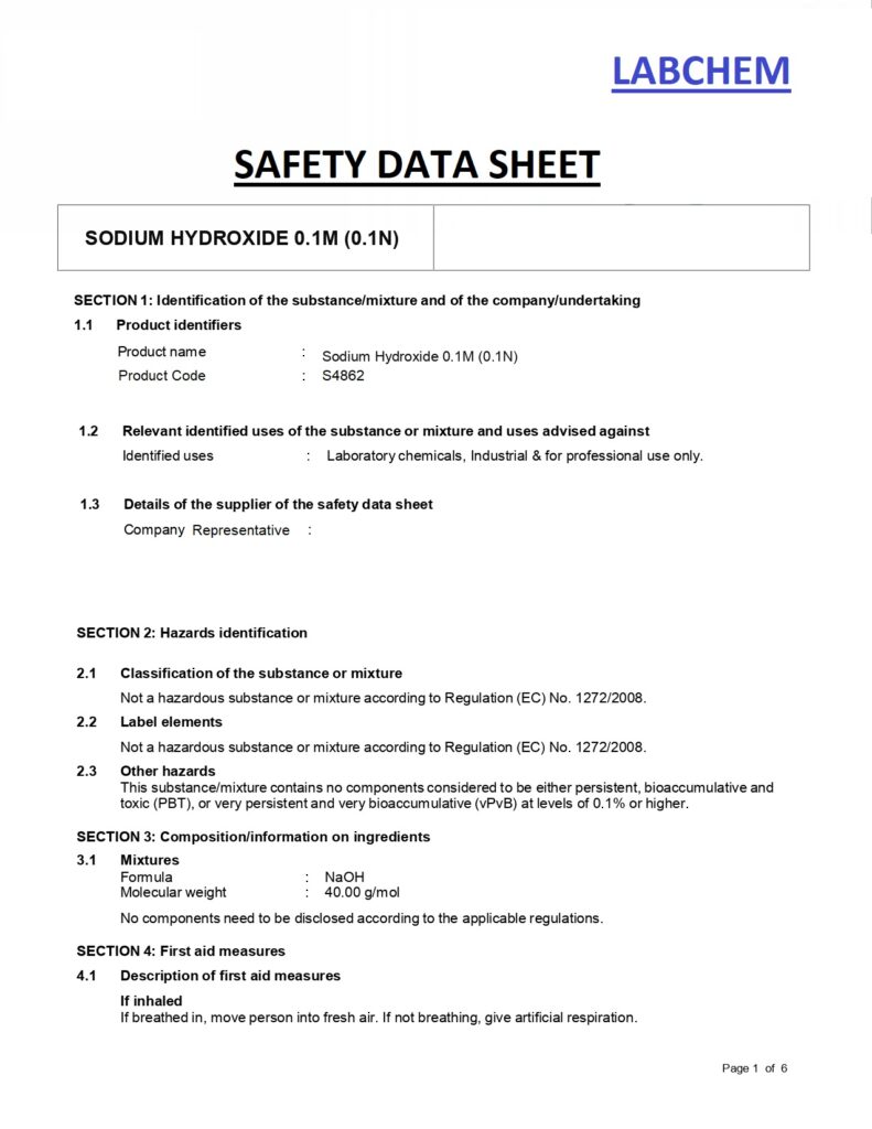 SDS – Sodium Hydroxide 0.1N / O.1Mol Solution