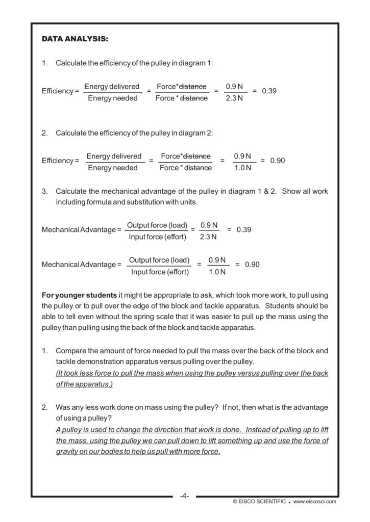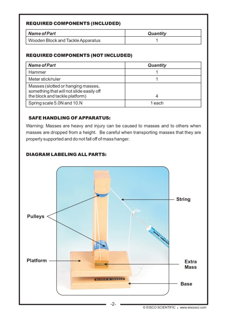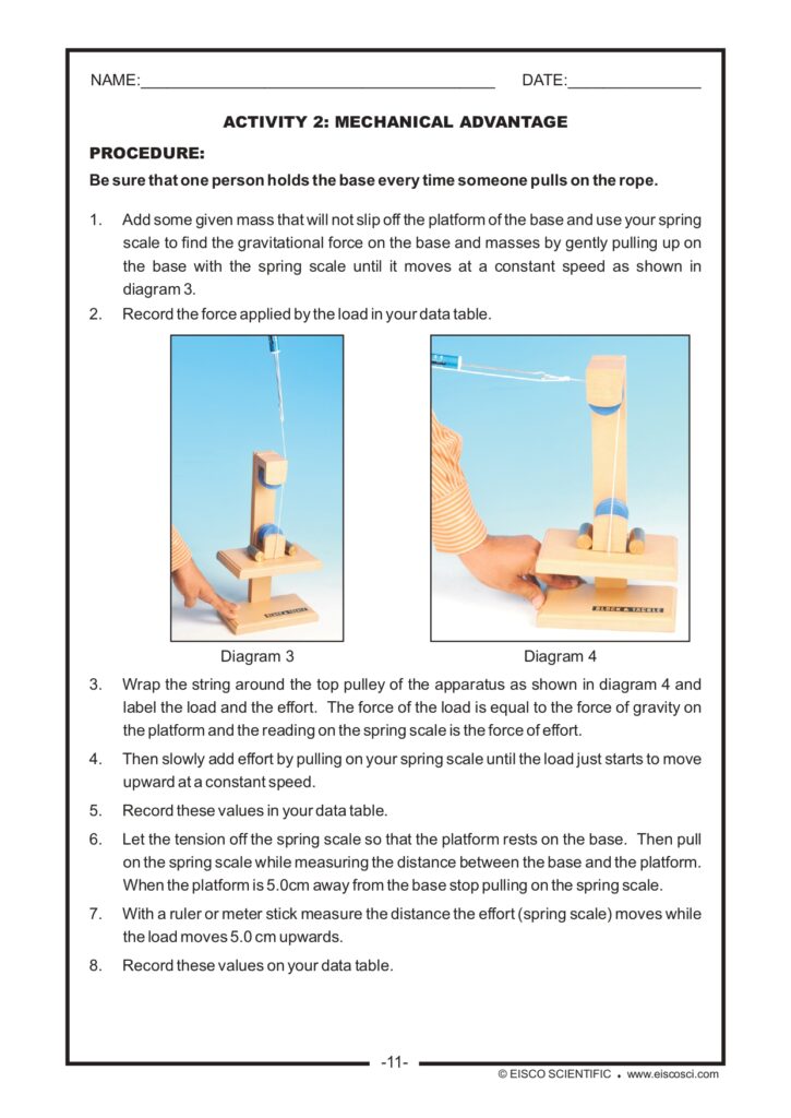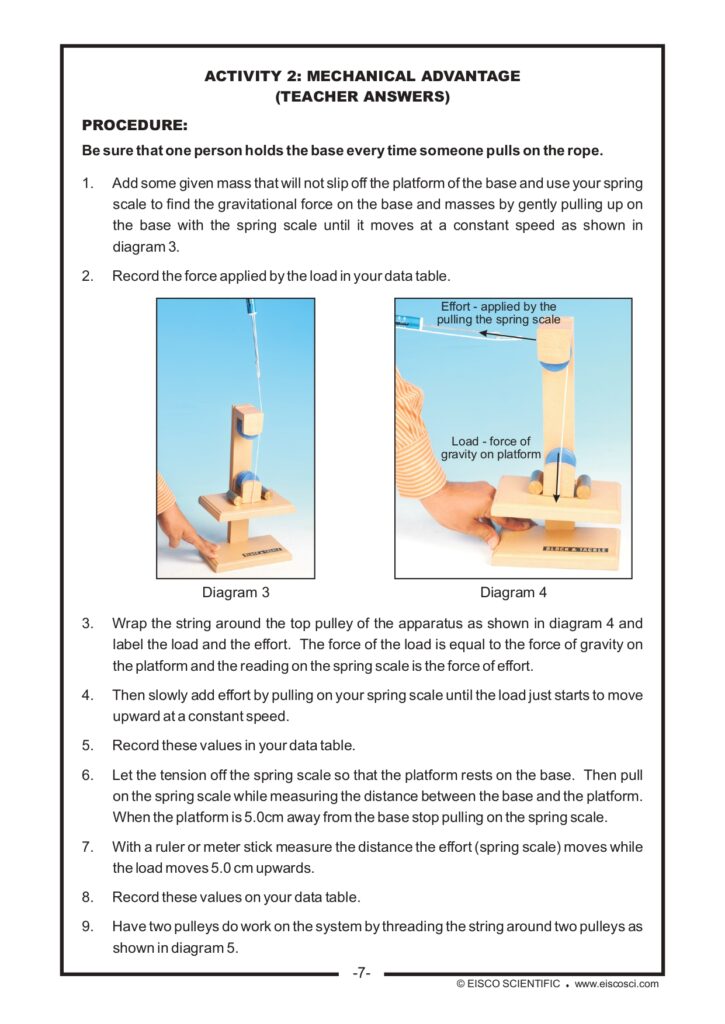 This apparatus can model how the use of several pulleys increases one’s mechanical advantage. Students can use this both qualitatively and quantitatively and its design lends itself easily to scientific enquiry based activities.
