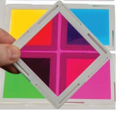 The Subtractive Color Theory Demonstration can be used to promote memory retention, encourage logical thinking, and teach the optics and physics of color mixing. As you are challenged to create specific color designs on the back-lit board, you must predict how colors of the filter tiles will mix either by experimentation or previous understanding – then you must strategically slide the squares into the correct configurations. An extensive guide to lead you through a variety of activities is included! This Color Theory Demonstration has a game-like quality and is elegantly simple. It makes exploring and experimenting with color mixing accessible (and fun!) for curious minds of all ages. Teachers: Use the puzzle as a way to introduce the phenomena of subtractive color mixing to students in a classroom and explore color theory even more deeply through the games and related activities in the included guide. Includes:
