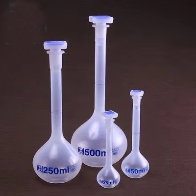 Volumetric Flasks feature a single calibration mark