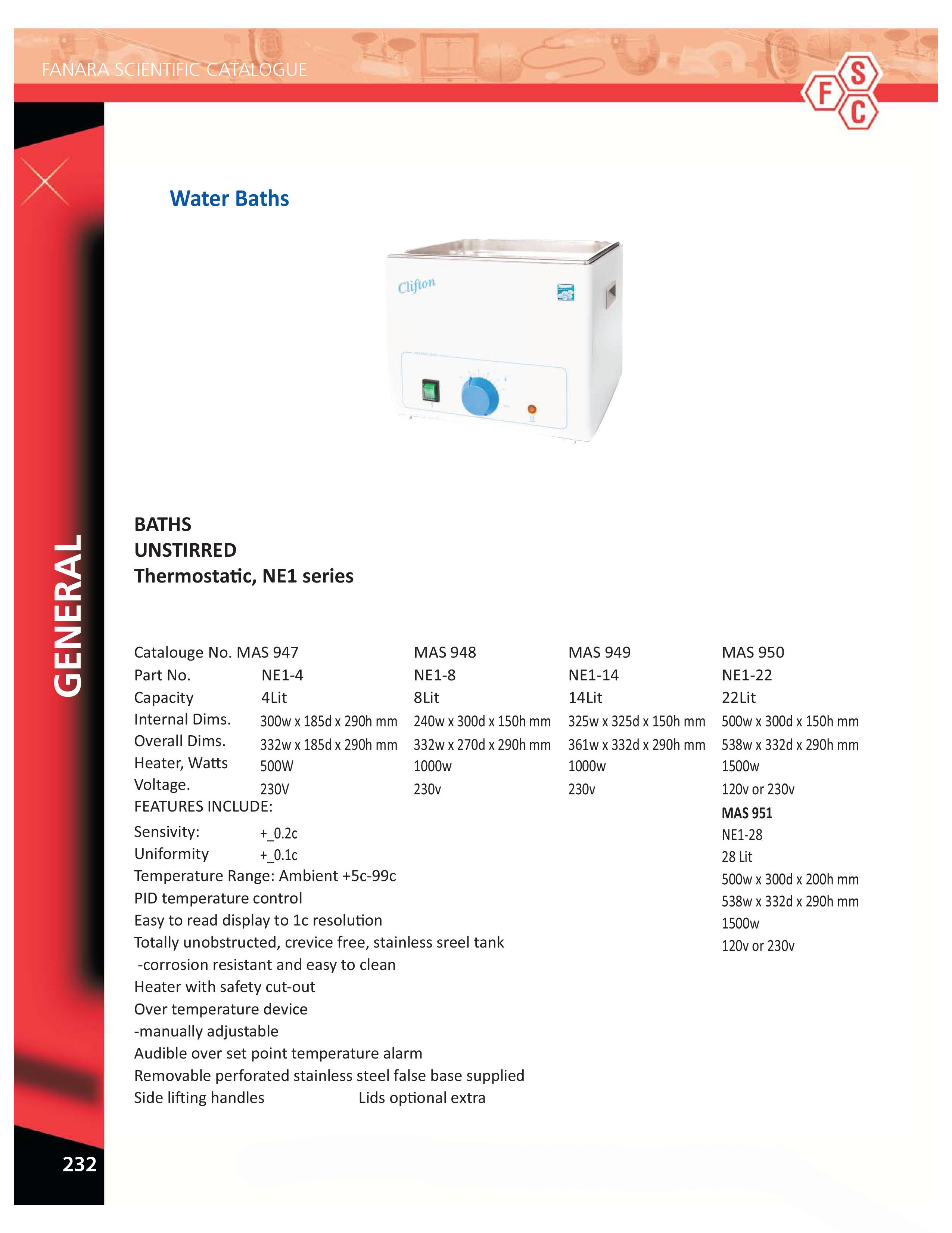 Water Baths, Baths Unstirred Thermostatic, NE1 Series