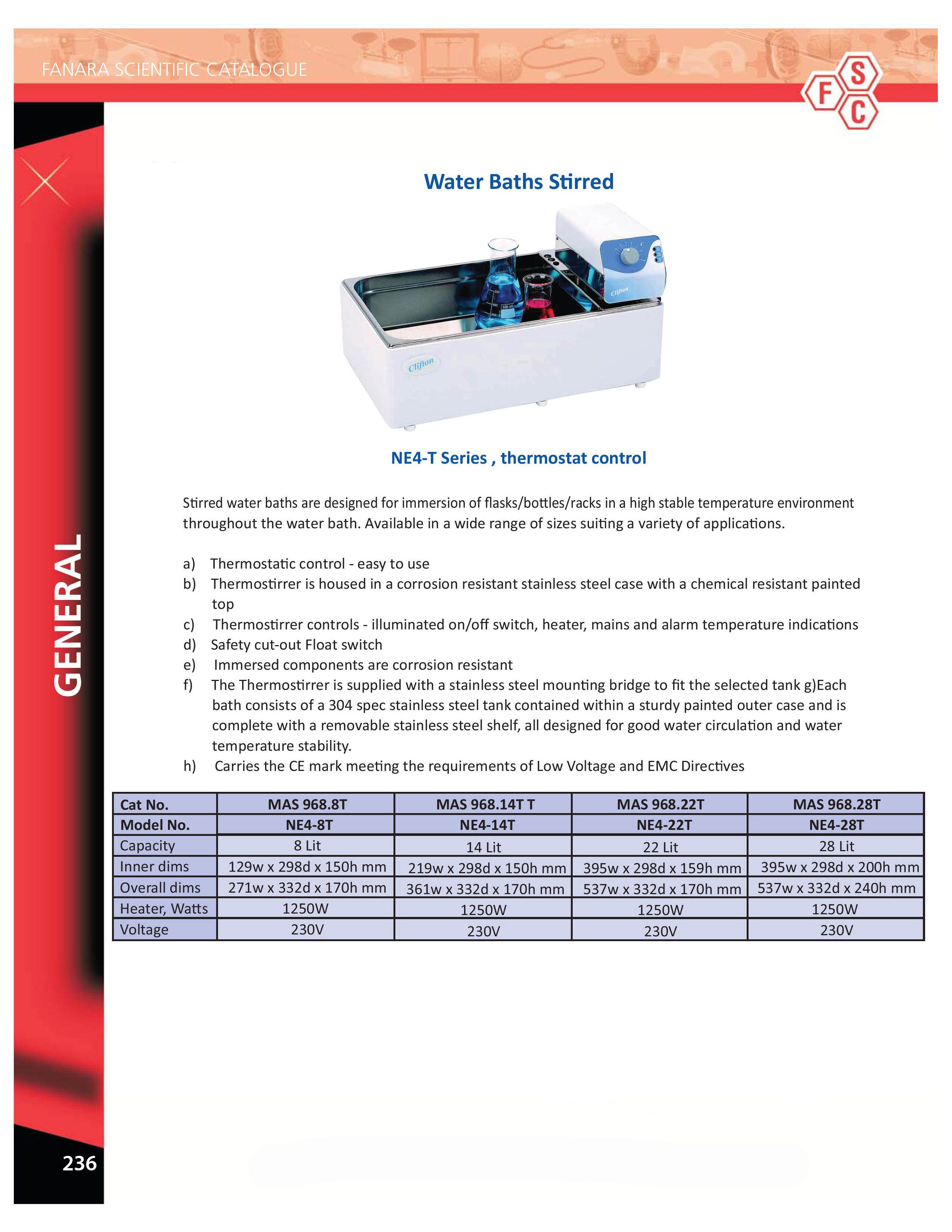Water Bath with Stirred, NE-4 Series, Thermostat Control, Made in England.