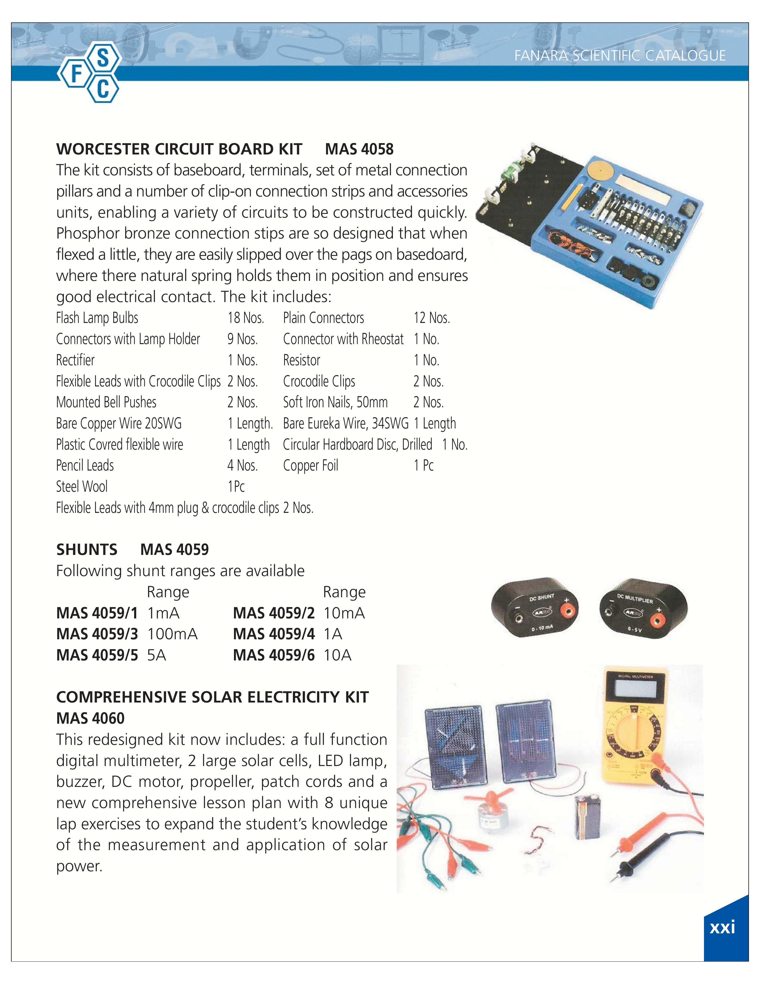 Worcester Circuit Board Kit, Shunts, Comprehensive Solar Electricity Kit