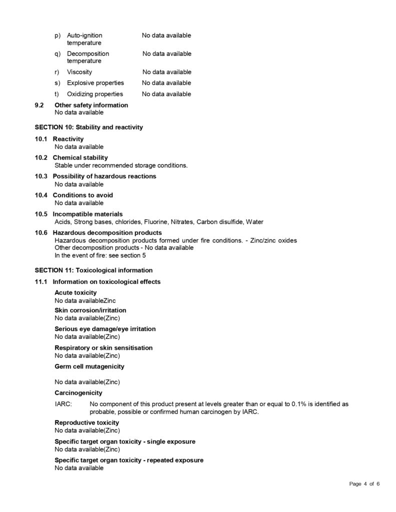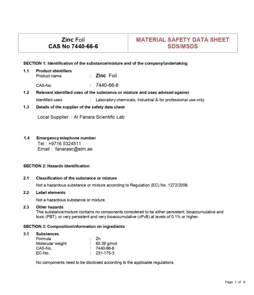 ZINC Metal Foil – MSDS